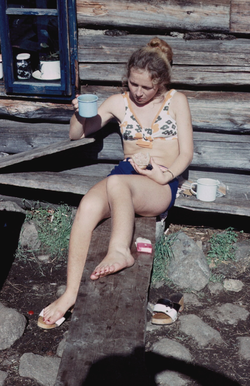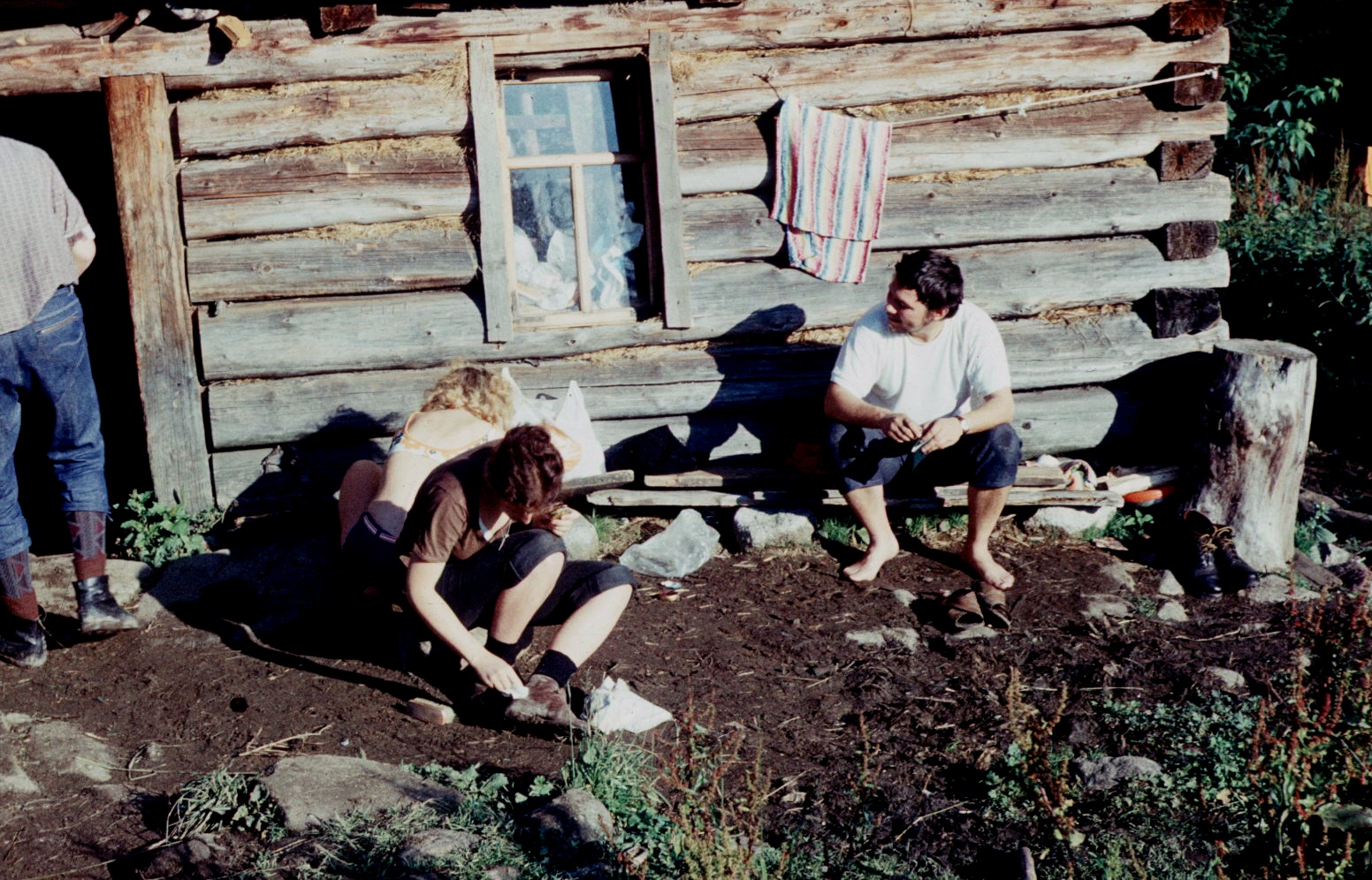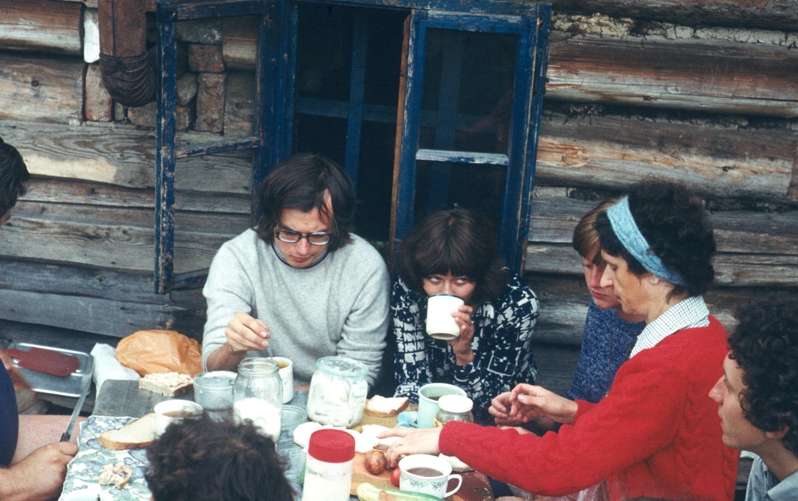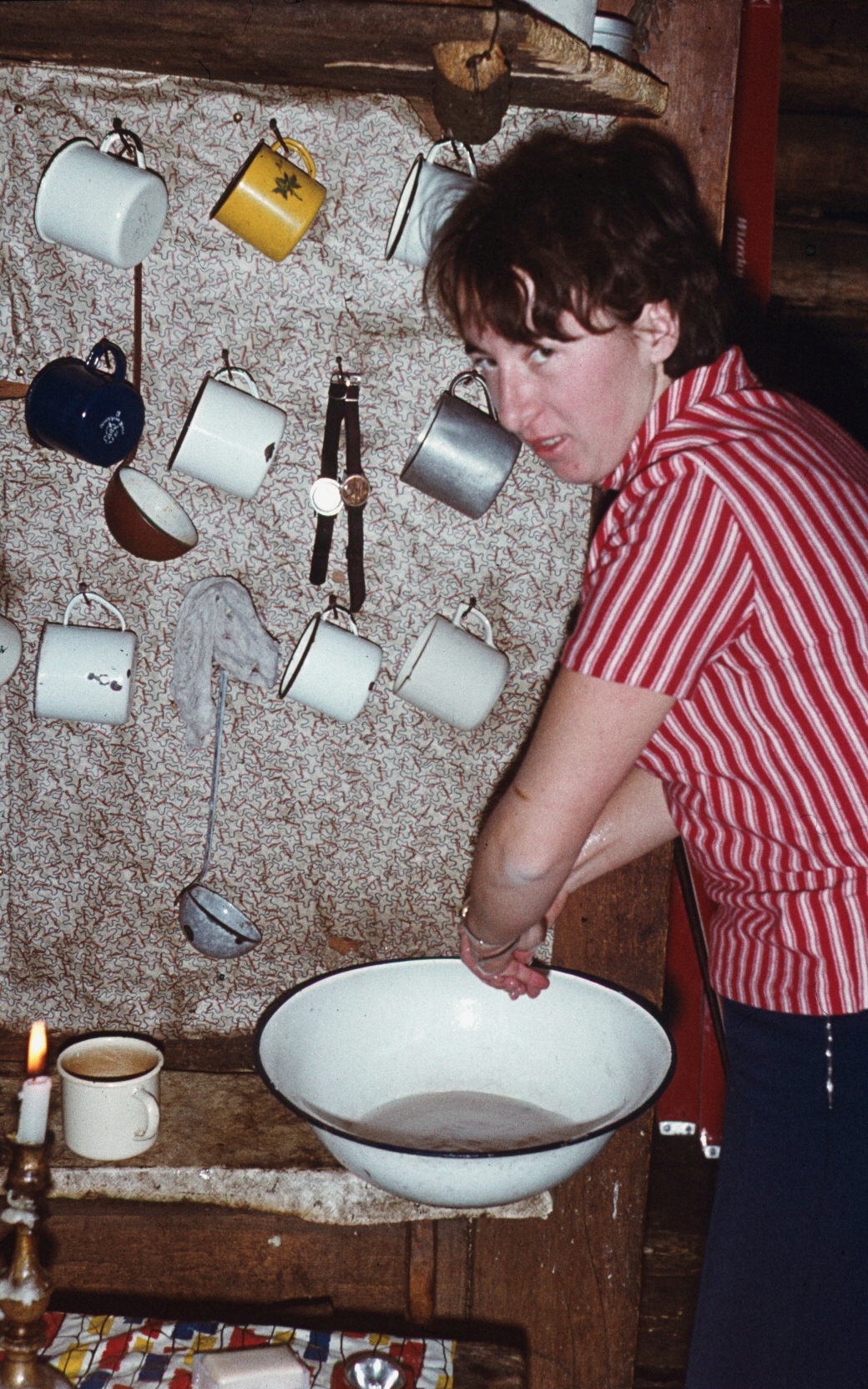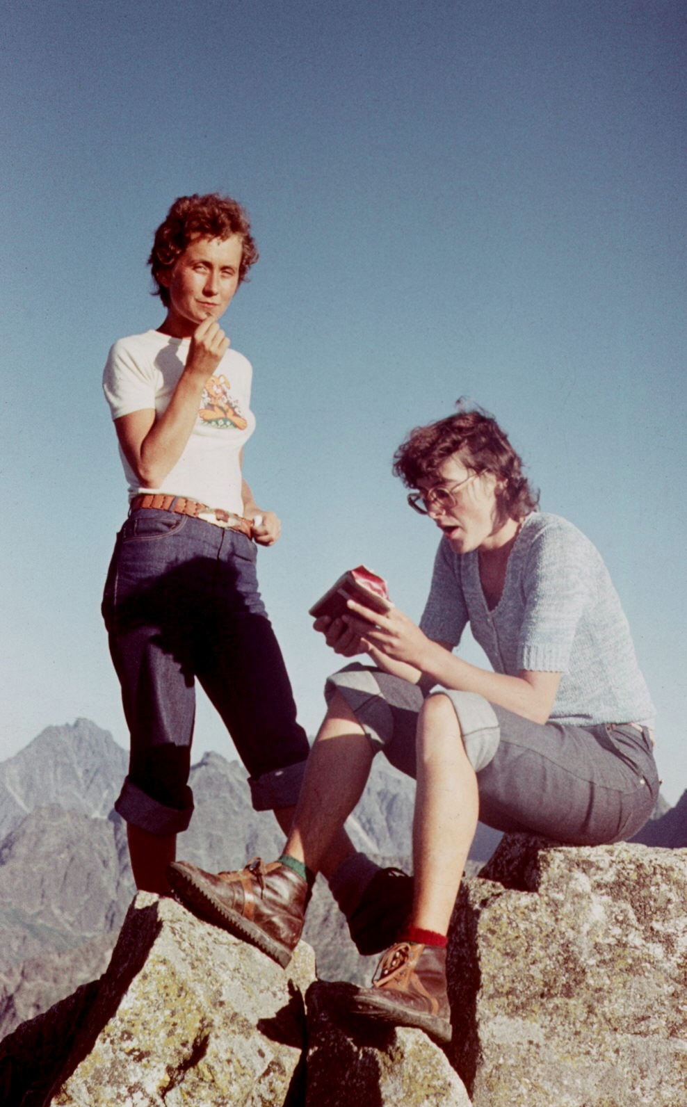 Grudzień’71. Ostatnia zima starej koliby – „Rysów”. Ewa Kuźmińska, w śpiworze Ania Bajtała, z tyłu Bożena Palmowska rżnie w karty.