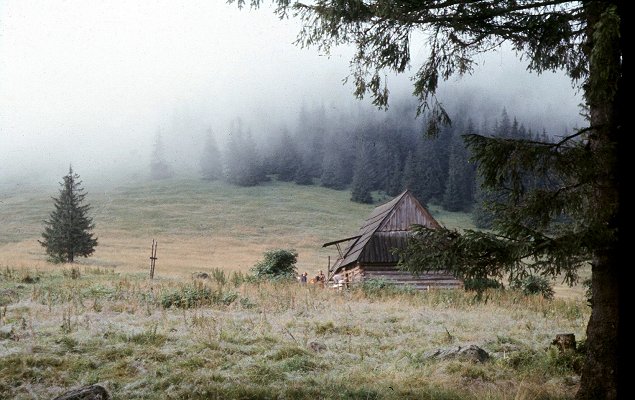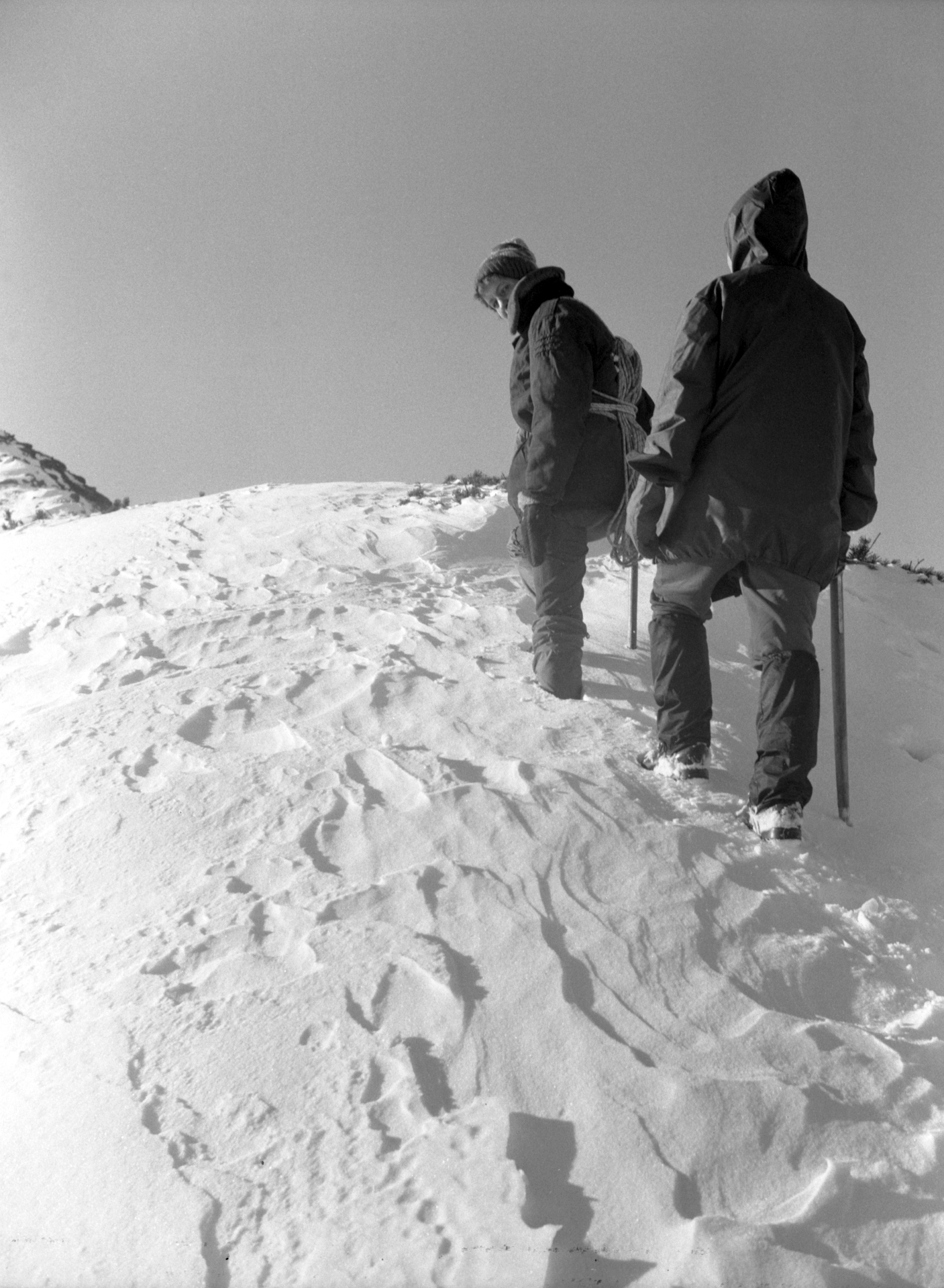 Grudzień’75. Koszysta. Góra nam się skończyła. Udajemy, że siedzenie na czekanach to jest super sprawa.