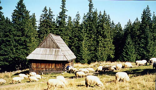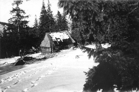 W pierwszej chwili trudno jednak odróżnić szarą bryłę szałasu od brunatnozielonego tła drzew i traw. Natura wtopiła go w tatrzański krajobraz. Patyna czasu okryła tę niegdyś pasterską gazdówkę starością spękanych płazów, osmalił ją dym, ubogaciły, porosty wrastające w próchnicze rany czerniejących dranic. Węgły zapadły się głęboko w ziemię. Wejście z wydeptanym progiem coraz mniej skutecznie zapierają dawniej masywne odrzwia na skrzypiących, od lat rdzą zżeranych zawiasach. W szparach poddasza drgają na zmianę promienie słoneczne lub nocami pobłyskują gwiazdy. Czasem po wnętrzu gwiżdże wichura, sączą się strużki deszczu albo zawiewa śnieg.